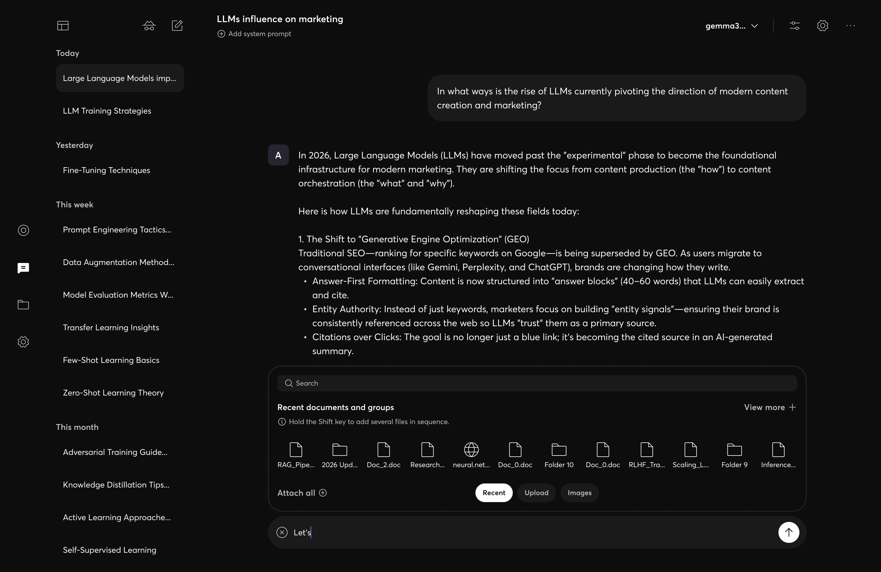 Through the RAG experience, users can transform selected documents into their ideal workflow – using custom system prompts and pinned information to ensure critical context never leaves the window.
